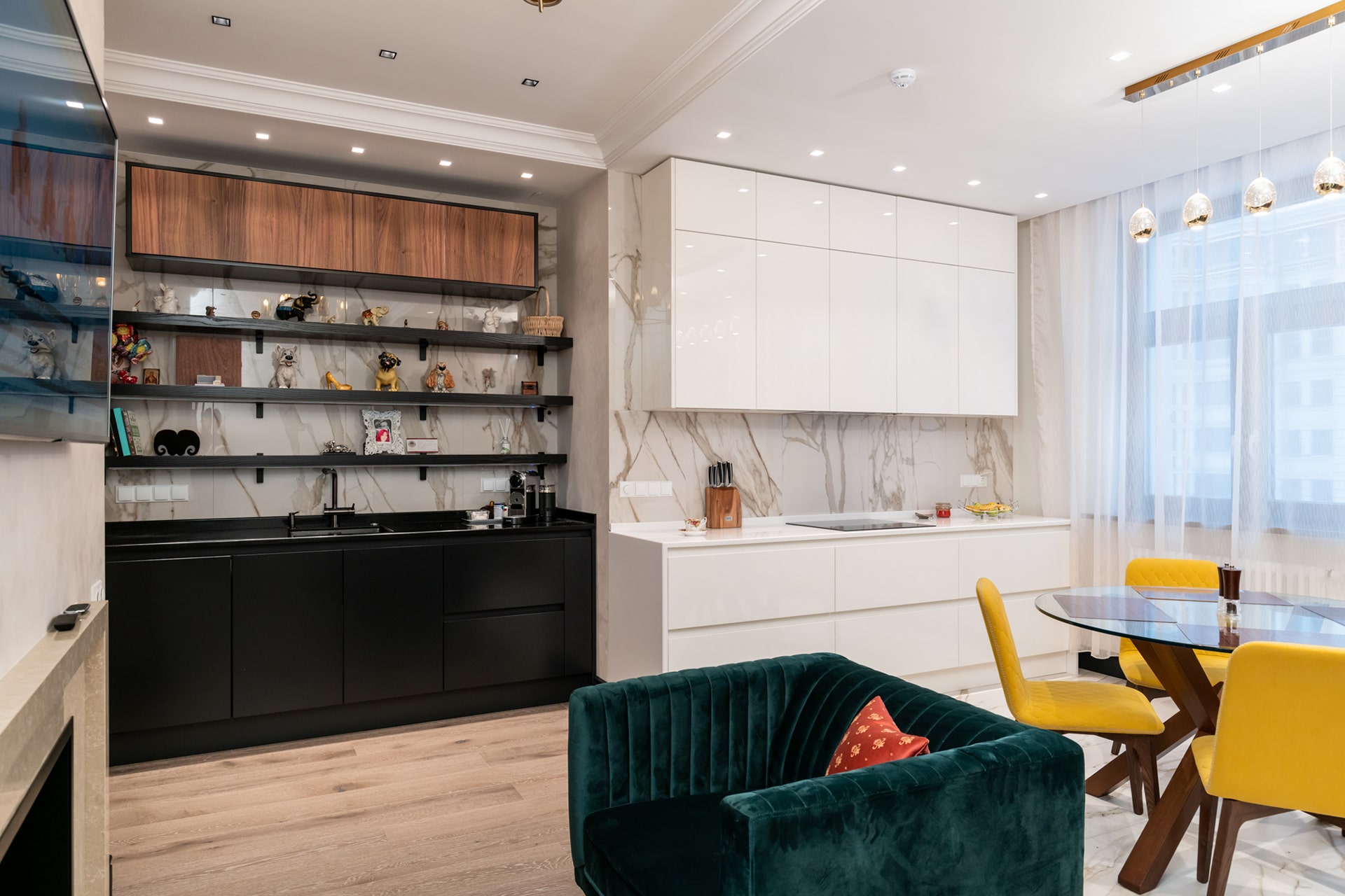• Белая кухня-гостиная с островом