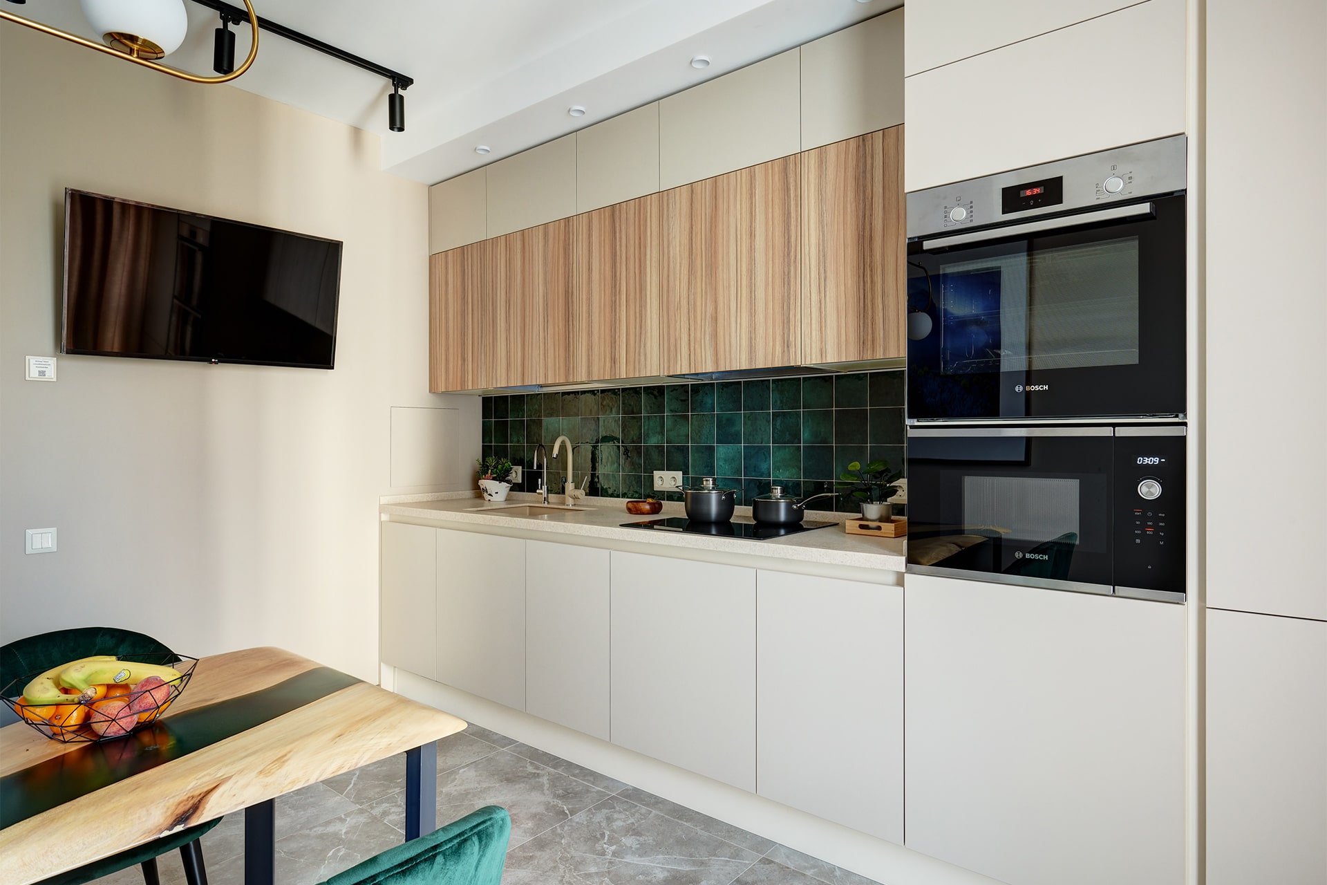 Расширить возможности дизайна, а также добавить динамики пространству можно, комбинируя матовые и глянцевые фасады в одной кухне.
